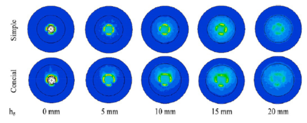 A aplicação prática dessas otimizações passa diretamente pelo refinamento geométrico dos componentes. Simulações numéricas demonstraram, por exemplo, que a substituição de um bocal circular convencional por um corpo rombo cônico (conical bluff-body) proporciona um arrastamento de ar 25% maior, o que potencializa a penetração do jato e a estabilidade da chama
